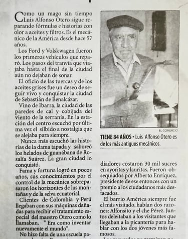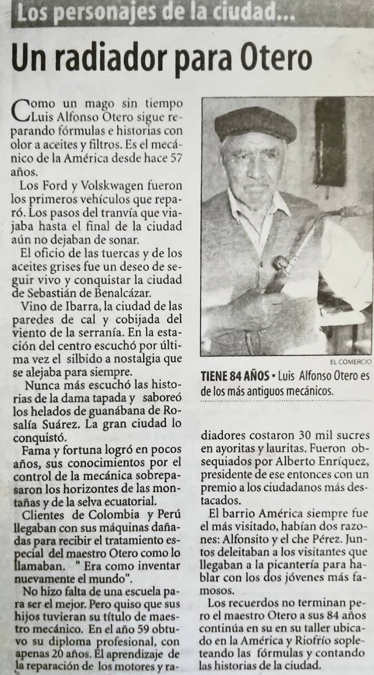 Radiadores A. Otero nació en Quito, cuando Luis Alfonso Otero fundó un taller dedicado a la reparación de radiadores. En 1940 se estableció en la Avenida América, donde, gracias a la maestría y liderazgo de su fundador, se consolidó durante seis décadas como un referente en reparación, soldadura y mantenimiento de radiadores en la capital.